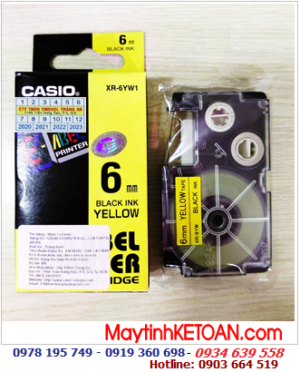 Băng in nhãn xịn chính hãng Casio. XR-6YW1- rộng 6mm-dài 8m, chữ đen nền vàng